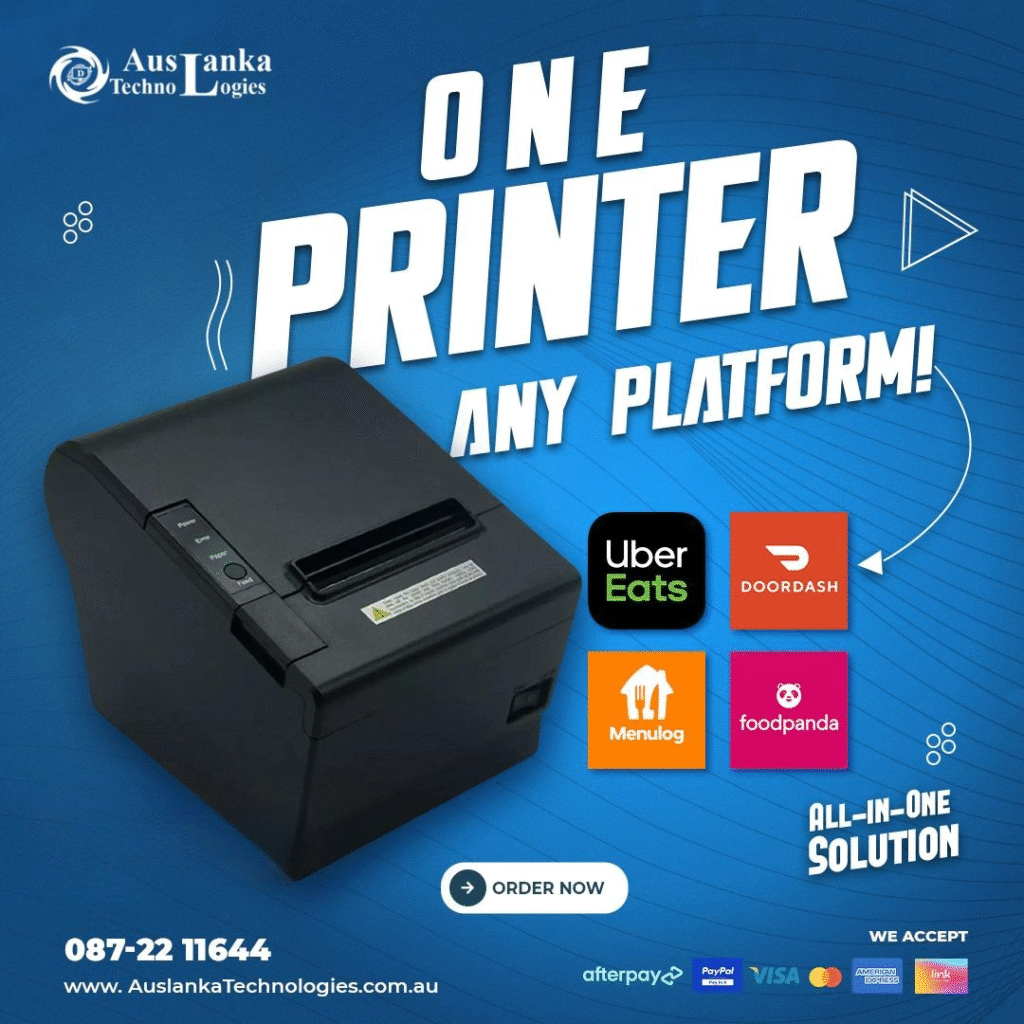 The All-in-One Thermal Printer is not just another hardware gadget — it’s a centralized hub for all of your order printing. Whether you’re receiving orders from Uber Eats, DoorDash, Menulog, Deliveroo, SkipTheDishes, GrabHub, or even Square POS, this printer lets you print across multiple devices simultaneously. That means fewer machines, fewer connections, and vastly fewer headaches.